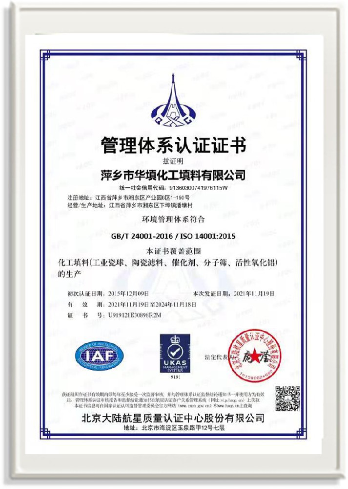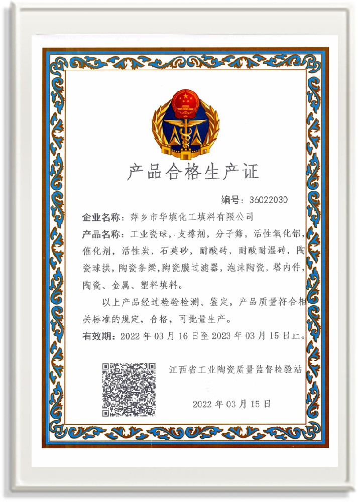 萍鄉(xiāng)市華填化工填料有限公司,位于320國(guó)道、109國(guó)道、浙贛鐵路、昌金高速公路貫穿其中,交通便利,是江西西部一顆燦爛明珠,創(chuàng)建于20世紀(jì)70年代初期,是中國(guó)石油天然氣股份有限公司“能源一號(hào)網(wǎng)”會(huì)員企業(yè)、中國(guó)石化物資采購(gòu)電子商務(wù)網(wǎng)絡(luò)和中國(guó)海洋石油總公司采辦業(yè)務(wù)系統(tǒng)成員單位,是上海大學(xué)江西材料基因組工程產(chǎn)業(yè)研究院工業(yè)陶瓷產(chǎn)業(yè)創(chuàng)新聯(lián)盟基地,且通過(guò)ISO9001:2015質(zhì)量管理體系、ISO14001:2015環(huán)境管理體系、ISO45001:2018職業(yè)健康安全管理體系認(rèn)證的化工填料生產(chǎn)企業(yè)。公司擁有陶瓷、塑料、金屬填料、催化劑、活性氧化鋁、分子篩等產(chǎn)品生產(chǎn)線,現(xiàn)有固定資產(chǎn)3616萬(wàn)元,占地面積3.8萬(wàn)平方米。公司具有悠久的生產(chǎn)歷史、雄厚的技術(shù)力量和先進(jìn)的生產(chǎn)工藝設(shè)備,可生產(chǎn)工業(yè)瓷球(支撐劑)、陶瓷、金屬、塑料質(zhì)的規(guī)整、散堆化工填料及分子篩、催化劑、生化濾料、活性氧化鋁、石化助劑、活性炭、環(huán)保材料、耐火材料等系列的200多種規(guī)格型號(hào)產(chǎn)品。